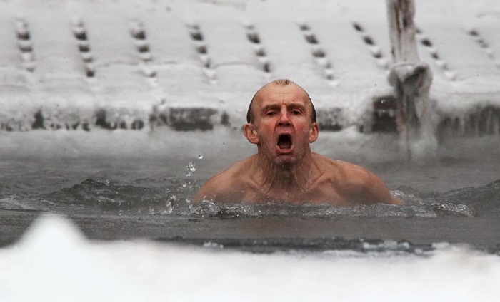 3. Житель Санкт-Петербурга плывет в проруби. (Dmitry Lovetsky / Associated Press)