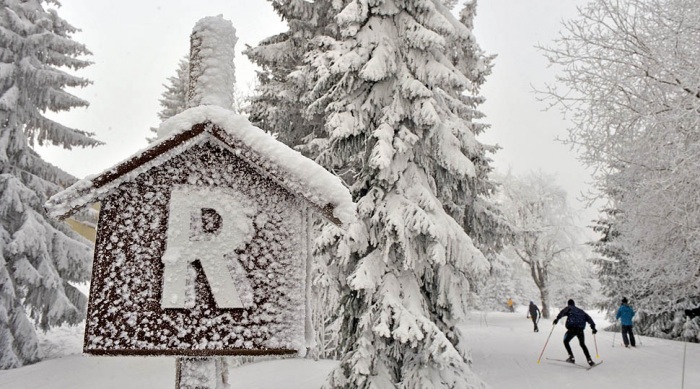 14. Лыжники на фоне заснеженного пейзажа в Оберхофе, Германия. (MARTIN SCHUTT / AFP / Getty Images)