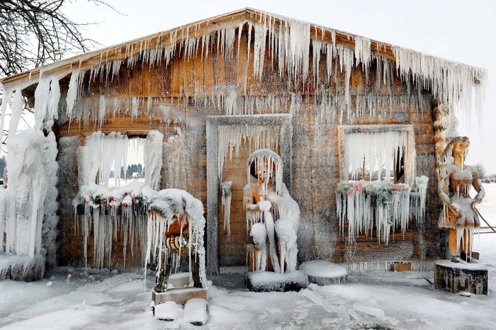 2. Деревянные фигурки превратились в ледяные скульптуры при морозе -8,5°С в Зеегребене, Швейцария. (STEFFEN SCHMIDT / KEYSTONE)