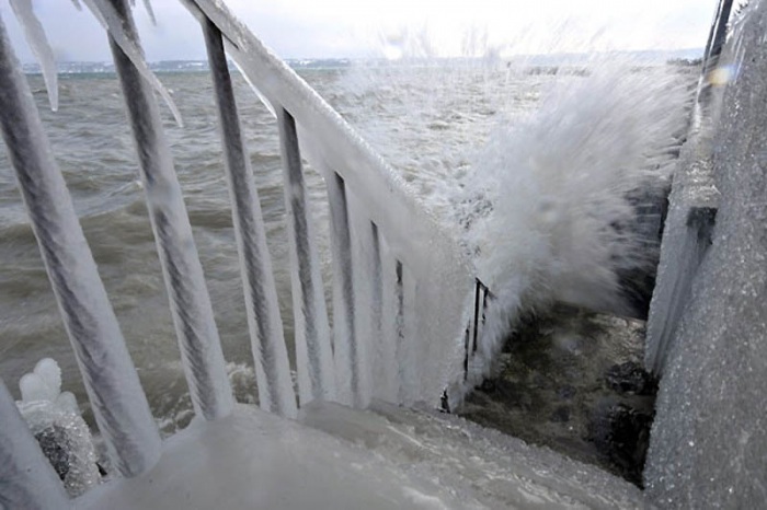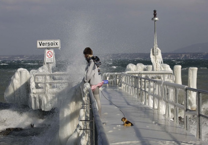 1. Удивительная ледяная скульптура из воды, разбившейся о берег озера Женева. (AP)