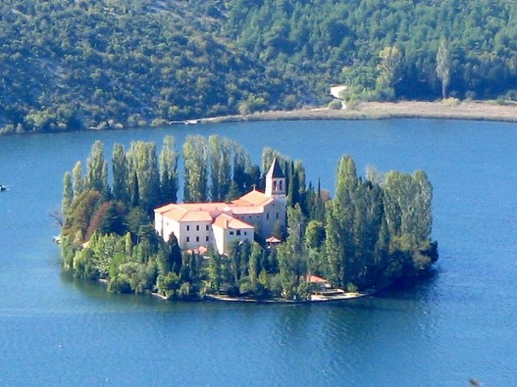 Верх по течению реки Крка от города Скрадина находится проточное озеро, посреди которого расположен остров Висовац. Овальной формы, остров имеет 478 метров береговой линии и размеры 170х120 метров. Кристально чистые воды озера окружены первозданной природой национального парка Крка. Висовац знаменит своим францисканским монастырем с XVII века.
