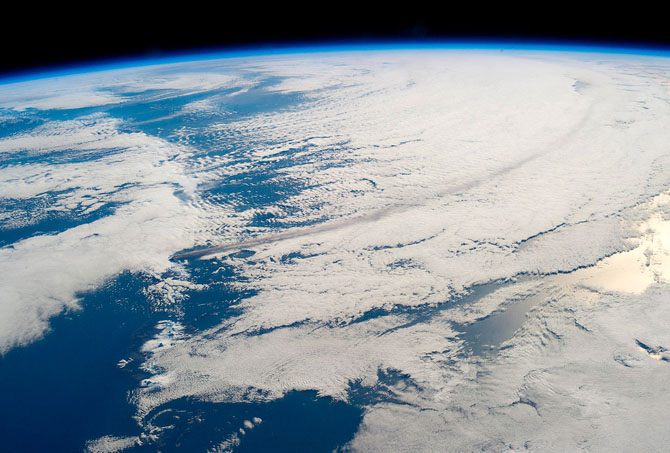 Вулкан Павлова начал извергаться 13 мая 2013 и выбросил в воздух облако пепла высотой около 6 км. Фотография с МКС.