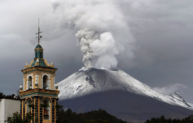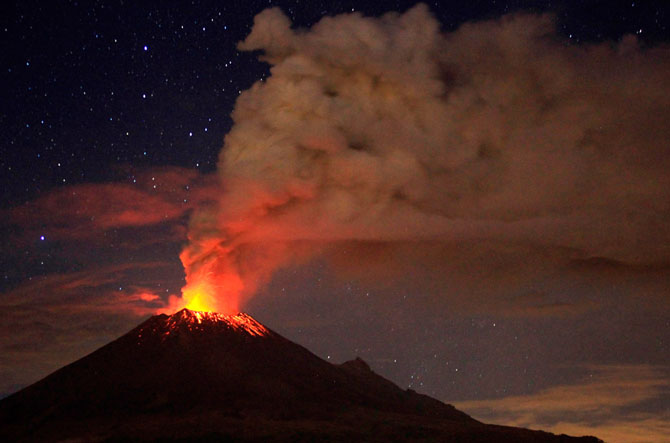 Извержение вулкана Попокатепетль («Дымящийся холм») в Мексике, 7 июля 2013.