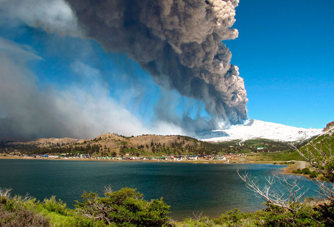 Извержение вулкана Copahue на границе Аргентины и Чили.