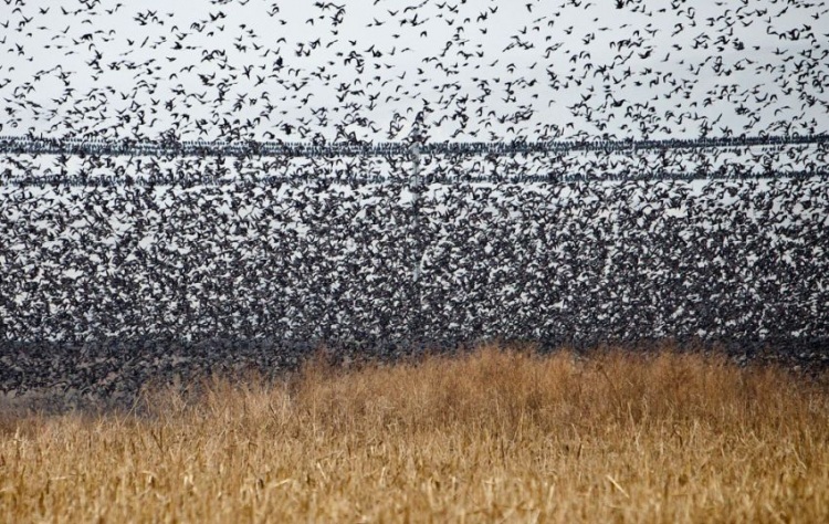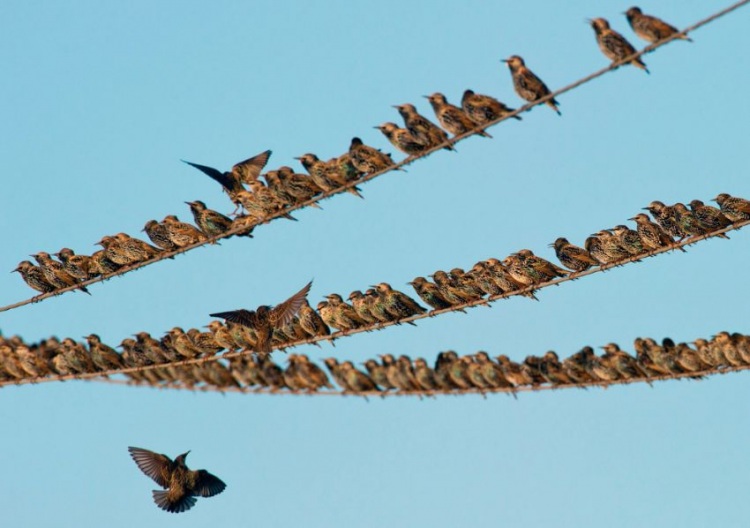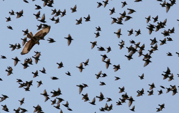 Двигаясь подобным образом в стаях, скворцы значительно уменьшают шансы быть пойманными на лету хищными птицами.