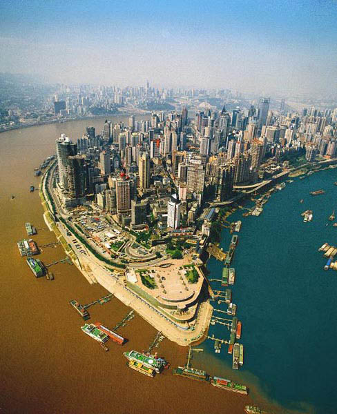 Река Jialing протяженностью 119 километров справа впадает в реку Yangtzе в городе Чунцин. Чистая вода сильно контрастирует с коричнево- желтыми водами Yangtzе