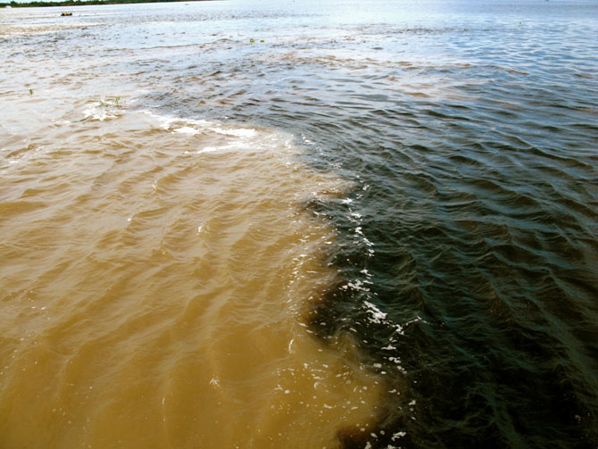Воды этих рек не смешиваются и имеют четкую границу на расстоянии почти 6 км.