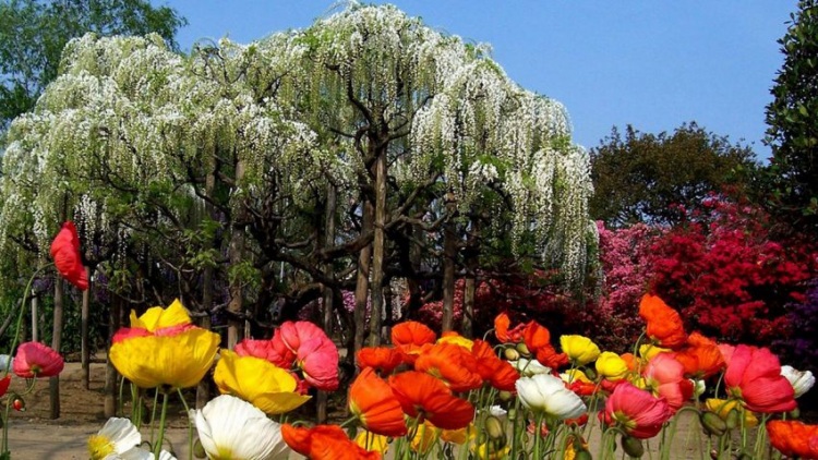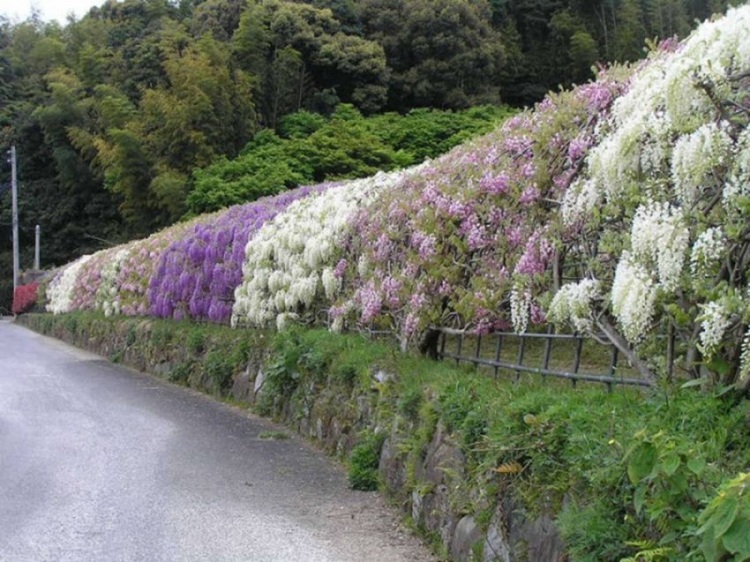 Японская вистерия встречается всех оттенков радуги, а ее свисающие ветки отлично смотрятся на специальных каркасах в форме тоннеля. Разумеется, самый популярный и самый красивый такой цветочный тоннель находится в саду Кавати Фудзи, и называется «Тоннель Вистерия».