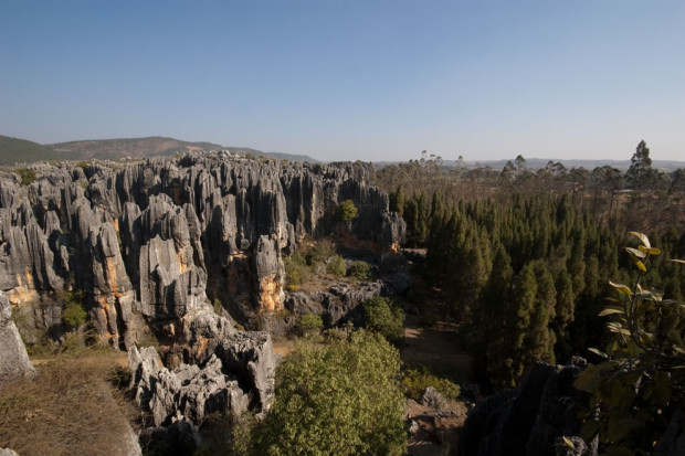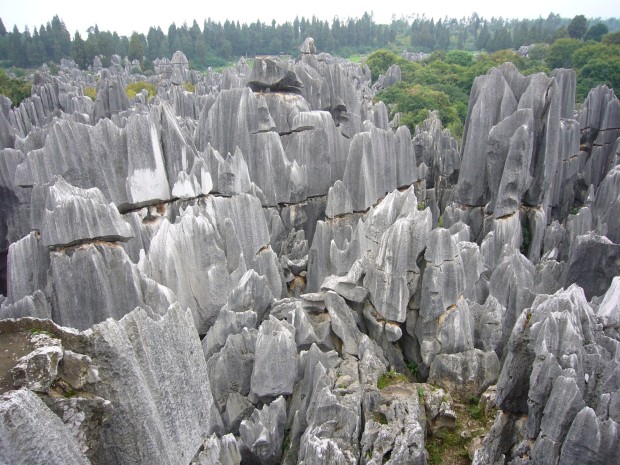 Занимая площадь более 26 000 гектаров, китайский каменный лес охватывает большую часть провинций Гуанси, Юньнань и Гуйчжоу. Каменный лес Найгу в Шилине, самой впечатляющей части провинции Юньнань, может похвастаться разнообразием форм и цветов. Также известные как Чёрный каменный лес или просто Шилинь благодаря близости к одноимённому городу, эти поразительные известняковые образования вырастают прямо из земли, как кальцинированные деревья, создавая уникальную иллюзию каменного леса или окаменевшего шторма на море.