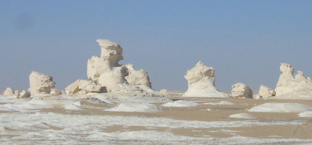 Сахара эль Бейда, как называют её местные жители, или просто Белая пустыня, находящаяся в непосредственной близости от оазиса Фараффа в Ливийской пустыне, это дом для уникального геологического явления. Странные фигуры из мягкого мела белого и кремового цвета продолжают изменяться под зубилами ветра.