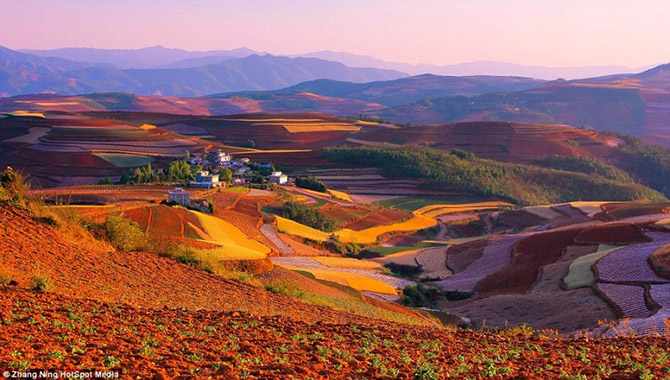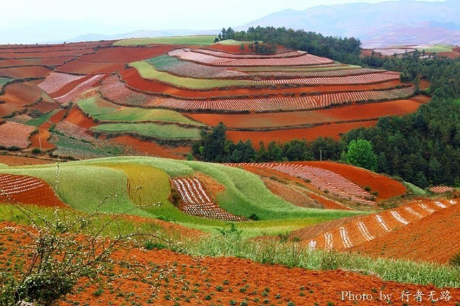 Удивительные виды красных террасовых полей в Дунгуане, провинции Юньнань (Китай).