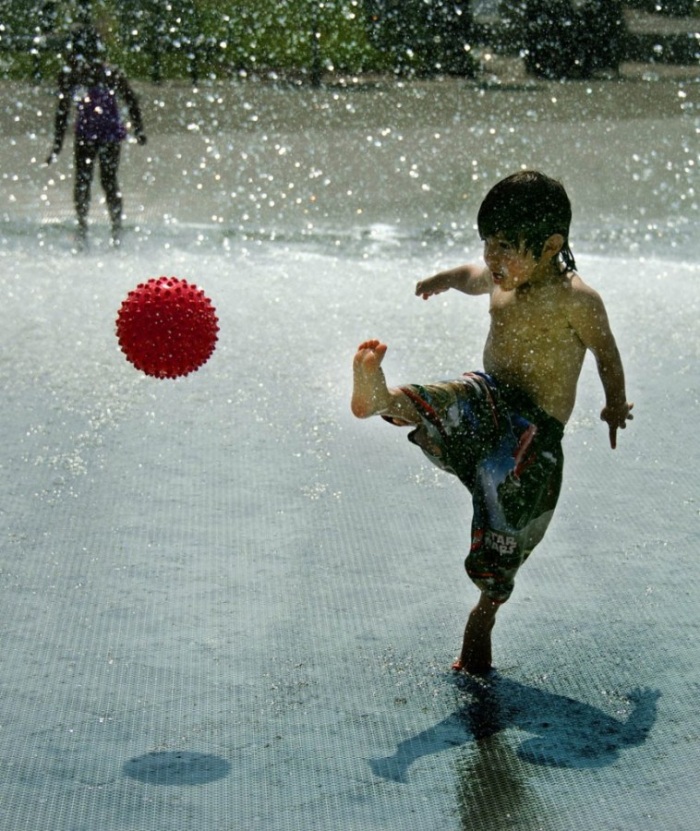 8. Трехлетний Тео играет с мячом в фонтане на набережной Джорджтаун в Вашингтоне, округ Колумбия. (JIM WATSON/AFP/GettyImages)