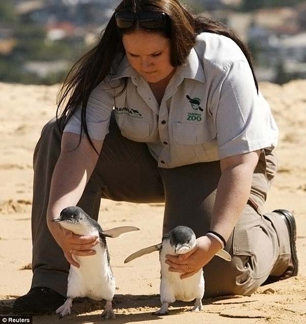 Работники зоопарка в Сиднее на днях выпустили еще двух пингвинов названных Север и Юг. Кждый год множество пингвинов остаются на берегах Австралии из-за слабости или болезни, специалисты помогают животным восстановиться а потом выпускают на волю. Юг сразу проковылял к воде у ринулся в воду, а вот Север не торопился на свободу.