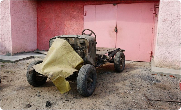 Двор у Вячеслава Веревочкина похож на музей военной техники: тут стоит отечественная 75-миллиметровая пушка, миномет, фашистский автомобиль «Кюгельваген». Все идентичное заводским образцам, до последней заклепки.