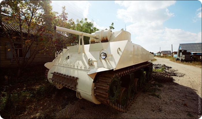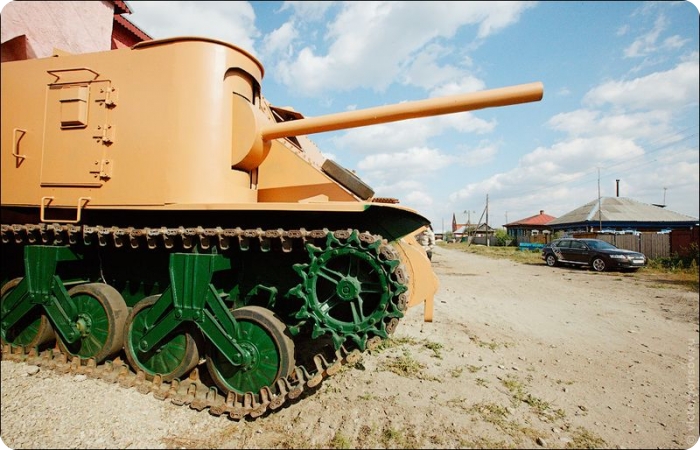 Все танки деревенского умельца ничем внешне не отличаются от настоящих, вот только оружие на них стоит не боевое.