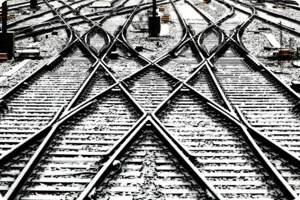 Снег на рельсах у главного железнодорожного вокзала Франкфурта. (AP Photo/ dapd/Mario Vedder)