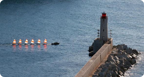 Яхты парусной школы покидают акваторию Ниццы перед началом очередного занятия по парусному спорту. (AP Photo/Lionel Cironneau)