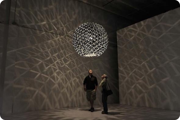 Посетители шоу «Art Basel» в Майами смотрят на инсталляцию «Перевернутая Берлинская Сфера» из коллекции «Margulies». (AP Photo/J Pat Carter)