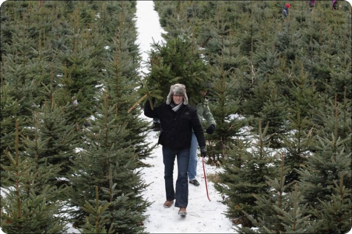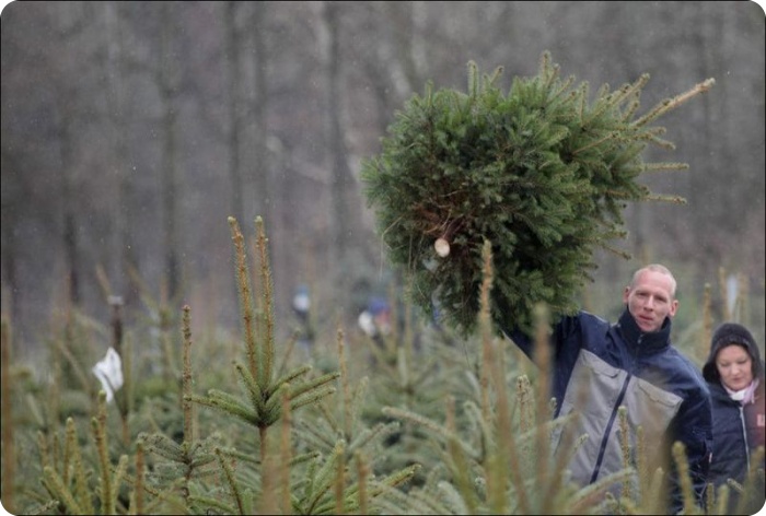 Покупатели уносят или увозят свои рождественские елки, которые они сами срубили или даже выкопали с корнями, чтобы пересадить у своего дома или на площади города, в детском саду или в парке.