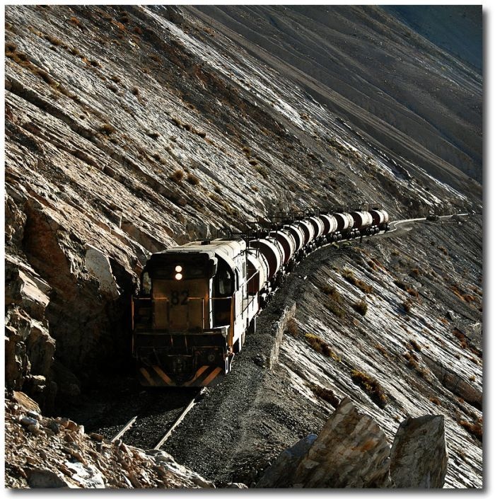 Одна из самых удивительных железных дорог в мире. Соединяет Чакарал на побережье Тихого океана с Потрерильос, отдаленным высокогорным (2850 м.) поселением с медеплавильным заводом. В этих краях практически не выпадают осадки благодаря чему дорога еще существует прямо на крутых склонах анд. Добычу меди в данном районе планируют прекратить уже совсем скоро — в 2012 году данный маршрут перестанет существовать.