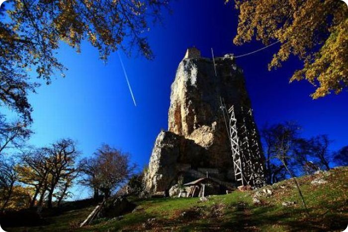 Церковь в селе Кацхи Чиатурского района Западной Грузии расположена на 40-метровой высоты каменном основании естественного происхождения. Фактически, это две церкви: одна была построена в 5 веке из добытого на месте и обработанного материала, вторая – в 6 веке, из обработанного камня, поднятого с подножия столпа. Восстановлены обе церкви стараниями священника — брата Максима, служащего там сегодня.
