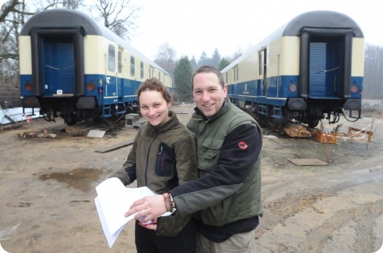 Vanessa Stallbaum и Marco Stepniak любят путешествовать, любят поезда и познакомились они в вагоне поезда. Поэтому дом свой решили хотя бы частично построить из вагонов. И воплотили мечту в жизнь, купив пару подержанных почтовых вагонов в Швейцарии.