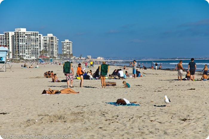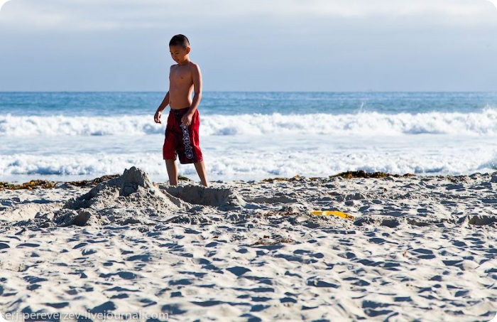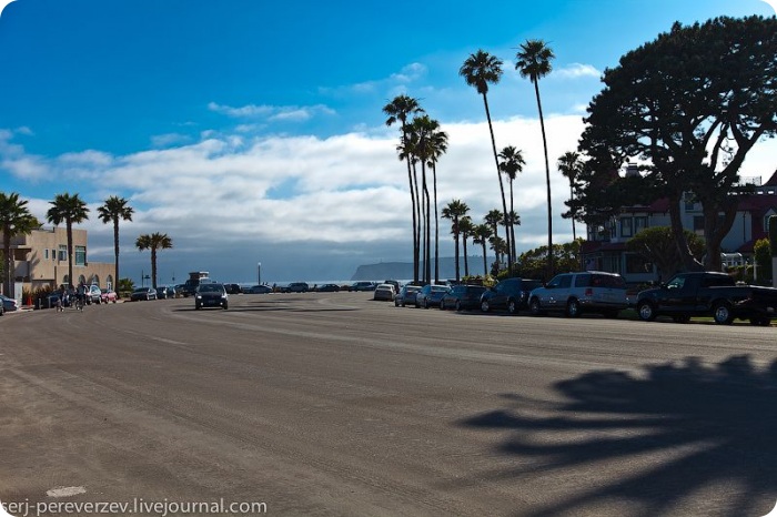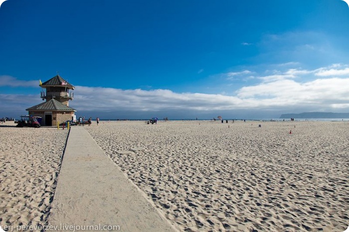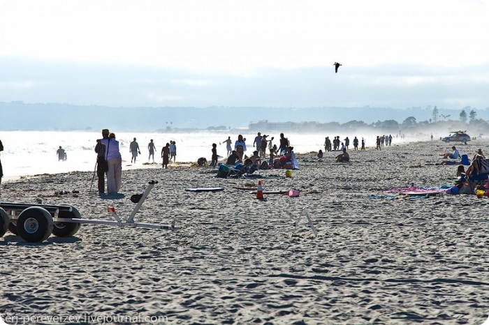 33.Кстати, видно, как над океаном неподалеку повисли серые тучи…так бывает часто, на Коронадо солнце, отъедешь немного на север на Mission beach, например, а там уже тучи.