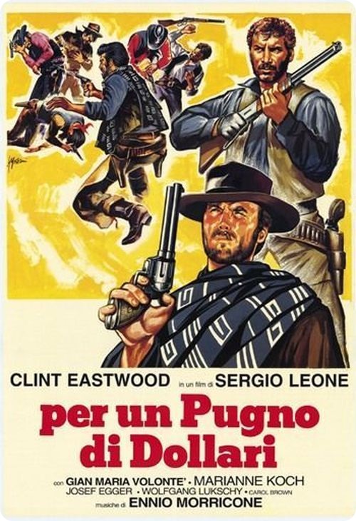 8. «За пригоршню долларов» (Per un pugno di dollari), 1964 г., режиссера Серджо Леоне. Ремейк фильма «Yojimbo», 1961 г., режиссера Акиры Куросавы, Япония.