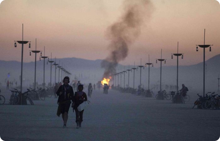Burning man (англ. Горящий человек) – ежегодный недельный фестиваль музыки и искусства, который проводится в пустыне Блэк Рок на севере Невады, США. Название происходит от традиции ритуального сожжения деревянной фигуры. Участники описывают событие как эксперимент, модель самодостаточного общества, предоставляющего колоссальные возможности самовыражения.