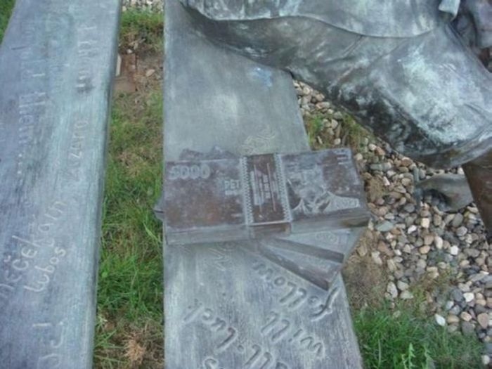 Памятник установлен у самого известного букмекерского бюро Чехии.