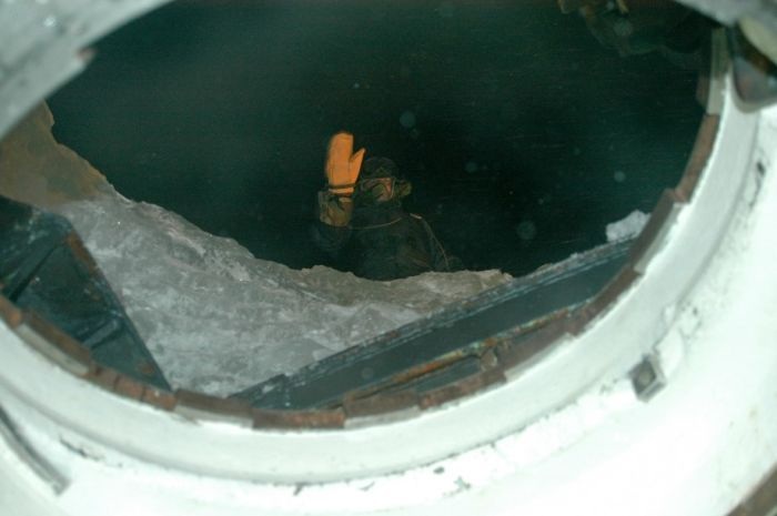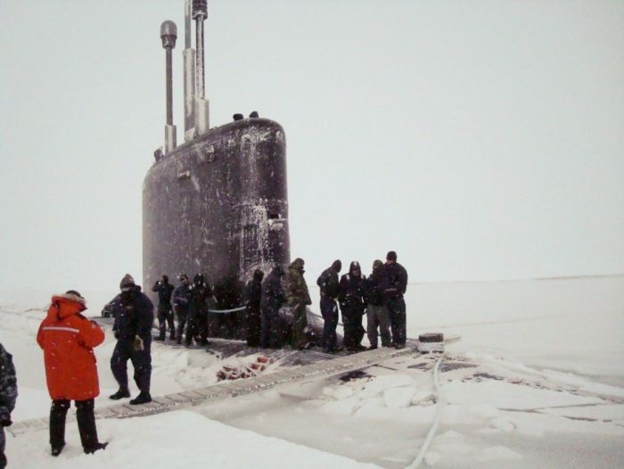 Моряки подводной лодки USS Charlotte (SSN-766), принадлежавшей армии США, установили мировой рекорд пробив лед толщиной 155 сантиметров во время всплытия. Температура воздуха на тот момент была в районе -50 градусов. От просмотра этих фотографий, мороз по коже.