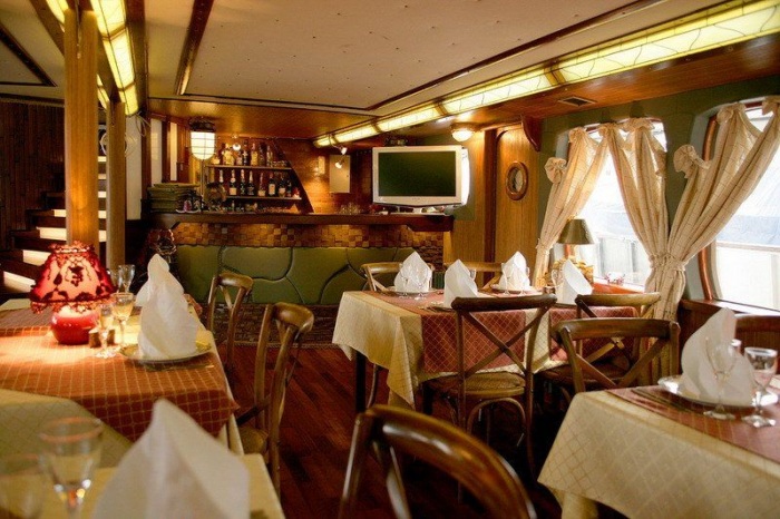 В Киеве, в уголке между Набережно-Хрещатицкой улицей и Новым Гаванским мостом стоит вот такой кораблик.