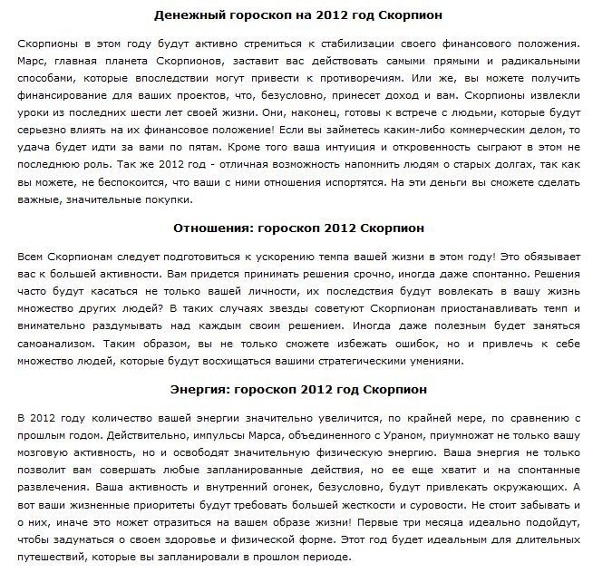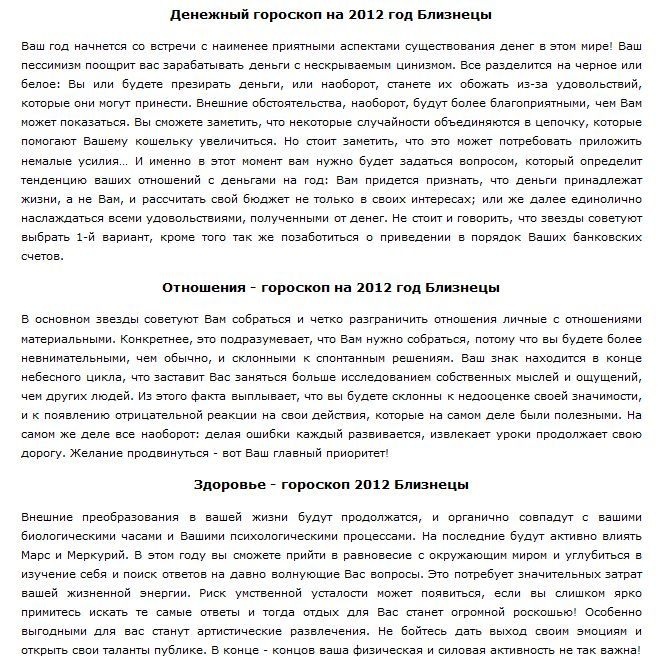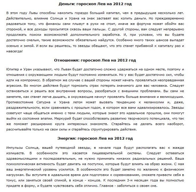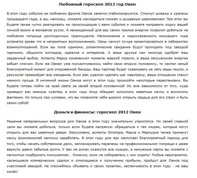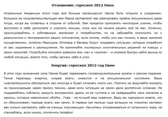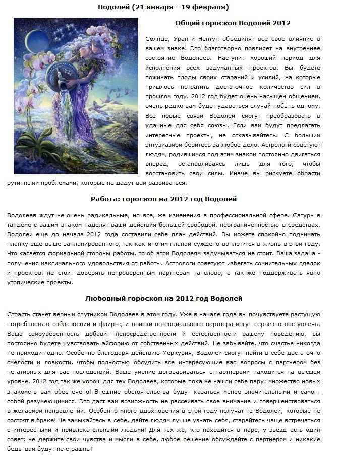 Цель индивидуального гороскопа на 2012 год — прояснить будущие действия и дать совет по улучшению собственной жизни в 2012 году, он сможет учесть все нюансы дня вашего рождения и их влияние на вашу судьбу. Благодаря астро-нумерологическому прогнозу, вы узнаете главные тенденции наступающего года для себя лично.