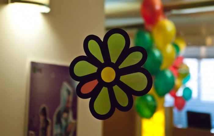 6. К слову, логотип ICQ можно встретить просто везде, куда ни посмотри — не удивлюсь, если у кого-то из сотрудников он набит где-нибудь на плече. На окнах входной двери и на ковролине, на стенах и на плакатах, на каждом рабочем столе, на ручках и блокнотах, на бейджиках и вывесках, на рюкзаках и майках — В-Е-З-Д-Е, целый луг цветочков.