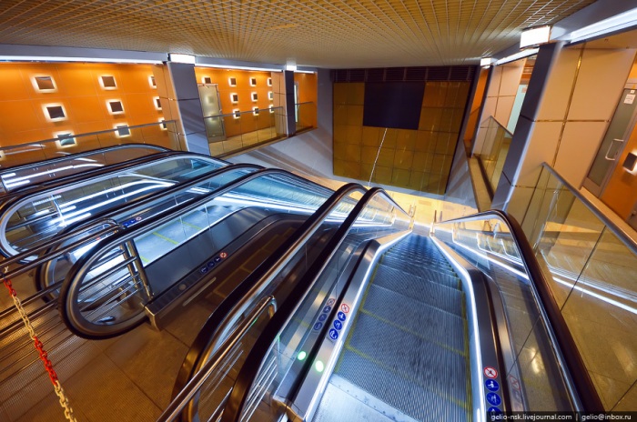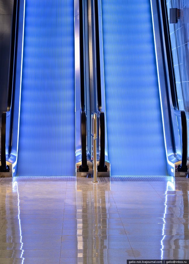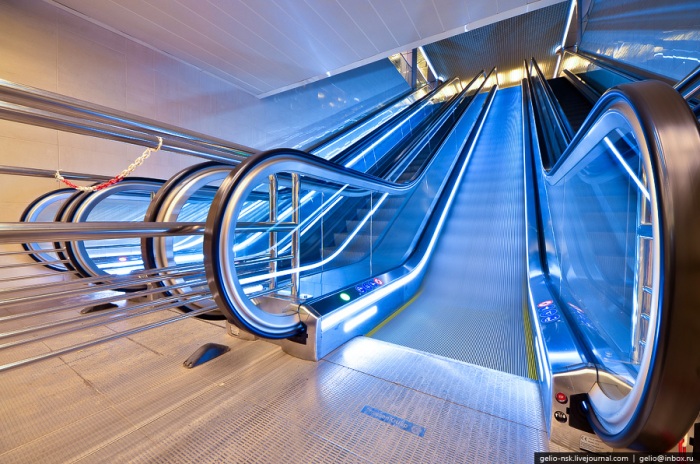 7. На станции установлены эскалаторы «Thyssenkrupp» с функцией стоп/старт, которая останавливает движение при отсутствии пассажиров и запускает при их появлении, что экономит электроэнергию и предотвращает износ деталей.