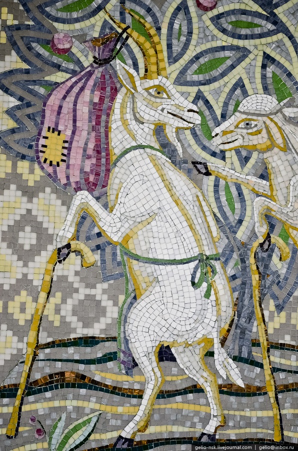 12. Путевые стены украшены мозаикой с фольклорными изображениями. Всего 10 мозаичных панно: gelio-nsk.livejournal.com/102985.html