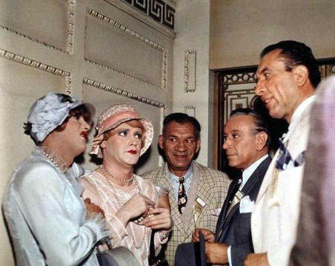 Зато с какой лёгкостью они вошли в образ Дафны и Жозефины: однажды (прямо в костюмах джазисток) актёры отправились в соседний кинопавильон, зашли в дамскую комнату и, спокойно усевшись перед зеркалом, начали красить губы. Проходившие мимо танцовщицы, ни на секунду не заподозрив что-то неладное, даже поинтересовались, где «девочки» снимаются.