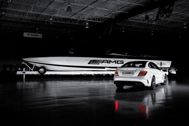 Лодка оборудована двумя двигателями Mercury Racing, мощность которых составляет 1350 л.с. Корпус катера сделан из многочисленных вставок из алюминия, которые также присутствуют и в дизайне салона.