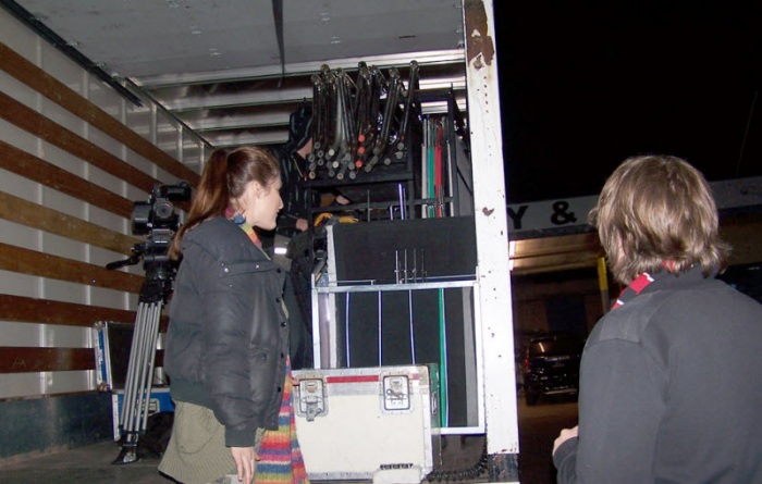 Смена кинопленки происходит тут же на месте и с большой предосторожностью. Так как съемка на 35 мм — достаточно дорогое удовольствие, операторы берегут каждый метр.