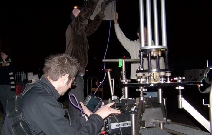 Операторы устанавливают вторую камеру, которая будет снимать с десятиметрового крана.