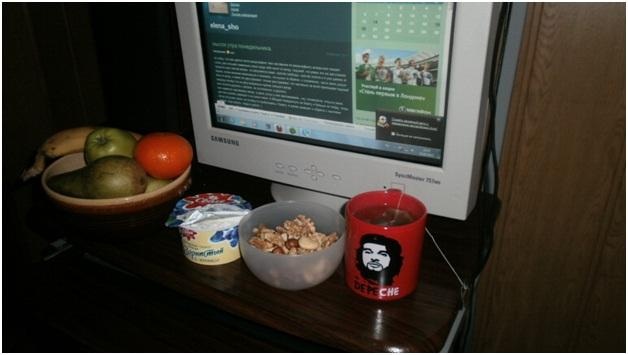 5:45 Завариваю в любимой кружке чай, строго без сахара! Творог, фрукты, орешки – у меня завтрак примерной девушки и ответственного директора. Пока грызу орехи, успеваю разложить всю нужную мне на день информацию по полочкам и составить план работы.Вот такой у меня тайм-менеджмент. Ни разу не подвел!