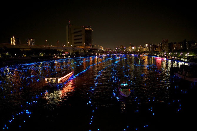 Спуск шаров был приурочен к традиционному фестивалю Хотару. По окончании фестиваля все шары были выловлены специальными сетями.