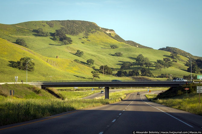 Вот тоннелей в Америке почти нет, даже в горных районах. Обычно предпочитают построить трассу в обход гор, но сохранить её полноценным хайвеем.