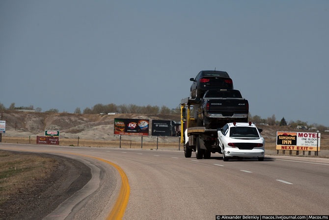 Одна пивоваренная компания где-то закупила десяток старых пожарных машин и поставила их вдоль дороги в штате Южная Дакота. Мне встретилось как раз около десяти их рекламных щитов, и возле каждого стояла такая машина.