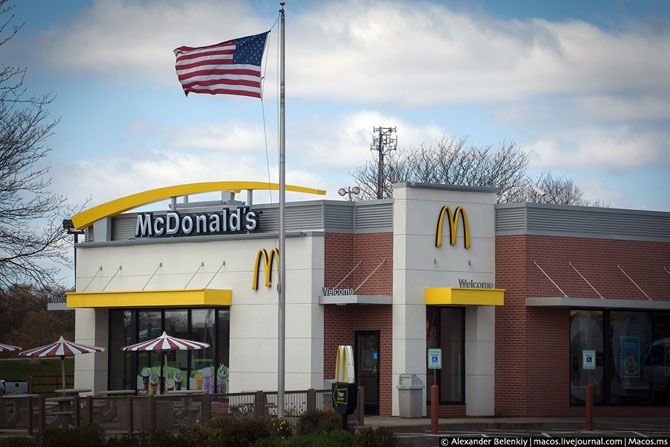 Такие �сервисные� съезды – это целые оазисы посреди пустыни. Можно покушать, заправиться, переночевать. Здесь царит конкуренция, поэтому кроме Макдональдса, вы обязательно найдёте и другие сетевые фаст-фуды: Бургер Кинг, Венди’с, китайский Панда Экспресс или мексиканский Тако Белл.