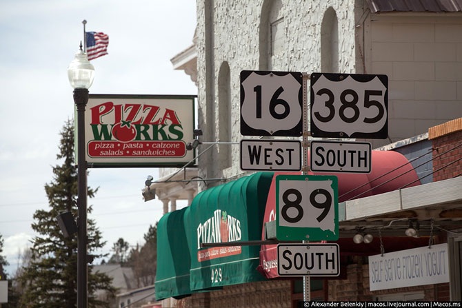 А это указатель для региональных дорог в центре небольшого городка в Южной Дакоте. В других штатах то же самое.