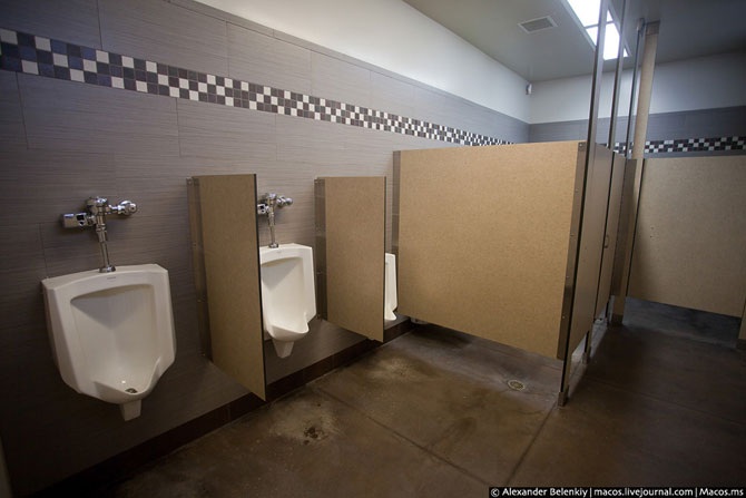 Пописать у обочины, на колесо машины – это не про Америку. Найти туалет в любом месте, даже в пустыне, а уж тем более на трассе – плёвое дело. Я даже не боялся ходить туда �по-большому�, потому что всегда есть туалетная бумага (её не воруют и не разматывают по комнате), а также специальные целоффановые накладки на стульчак. Туалеты очень чистые.