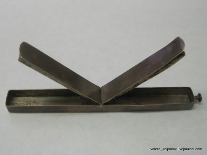 Коробочка для зубного порошка начала 18 века из чистого серебра. Два отделения: для крупно- и мелкозернистого порошка. Влажная щетка макалась в порошок и чистила зубки.