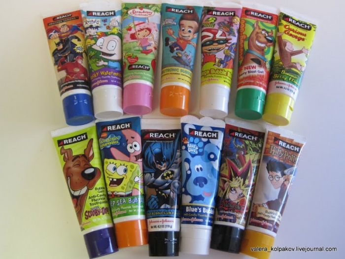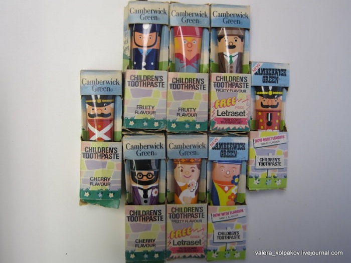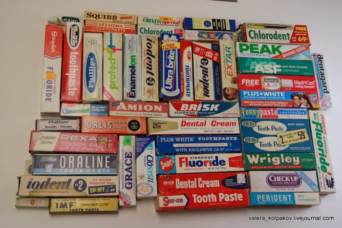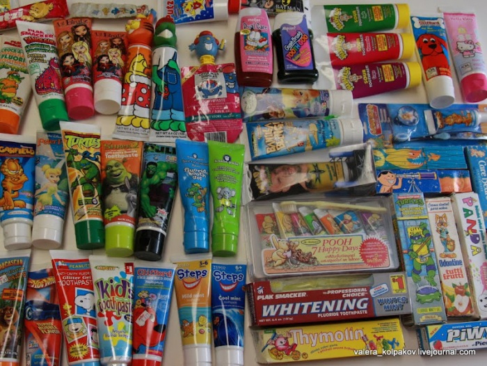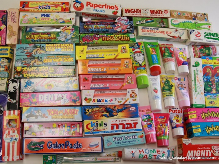 А в этих невзрачных на вид коробочках зубная паста со вкусом йогурта, тыквенного пудинга, карамели, мёда, зеленого чая, розы, грейпфрута, черники, киви, банана, индийского соуса карри, слегка подсолёная… Всего 50 разных необычных привкусов.