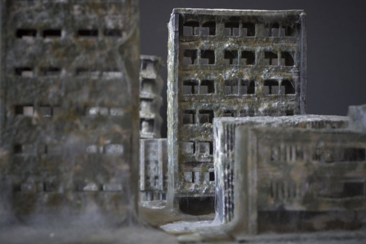Итальянский художник Дениэл Дель Неро создал несколько архитектурных мини-моделей. Все очень просто: он сделал небольшие города из черной бумаги, присыпал их мукой и подождал, пока они покроются слоем плесени. Эффект получился неожиданно красноречивым. Мы словно смотрит в далекое будущее, в эпоху, когда человечества уже давно не будет на земле.